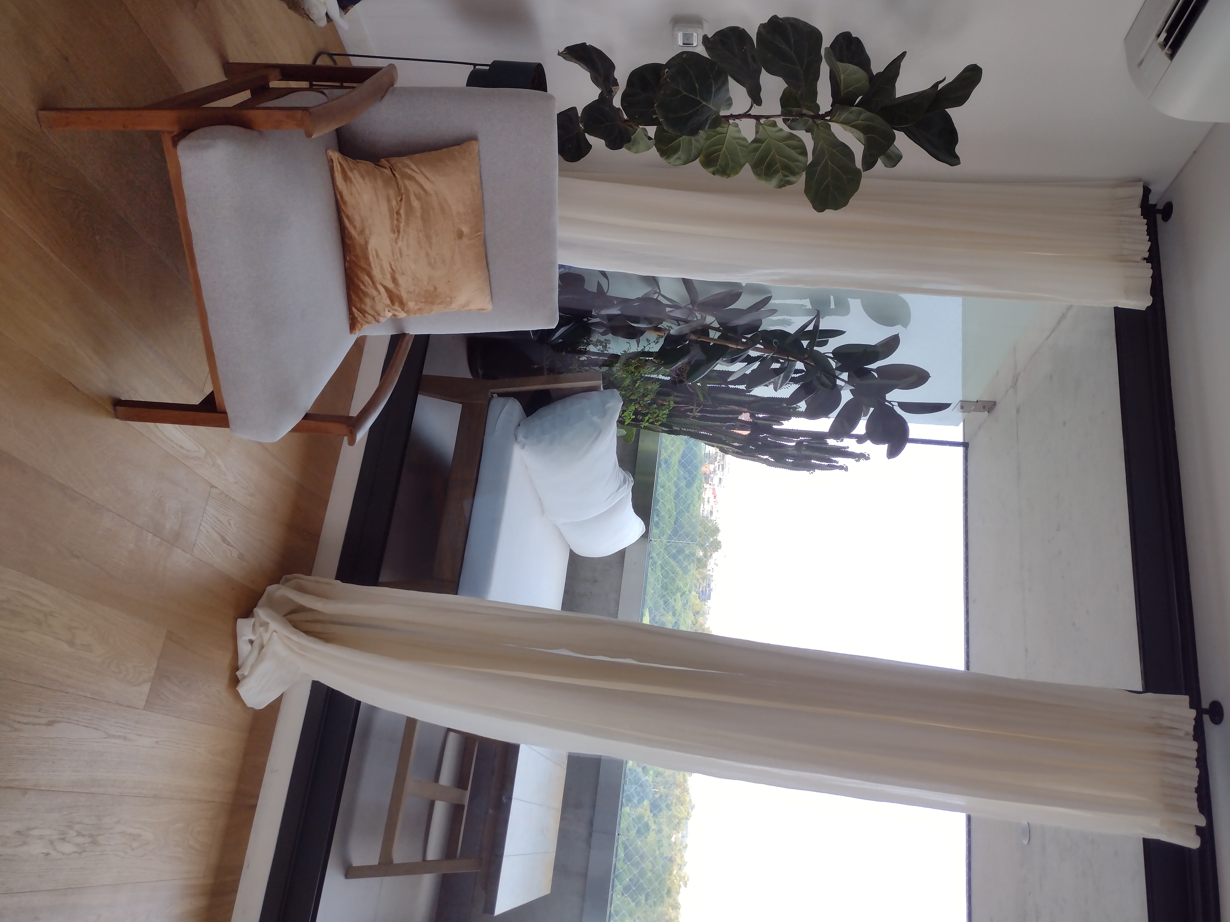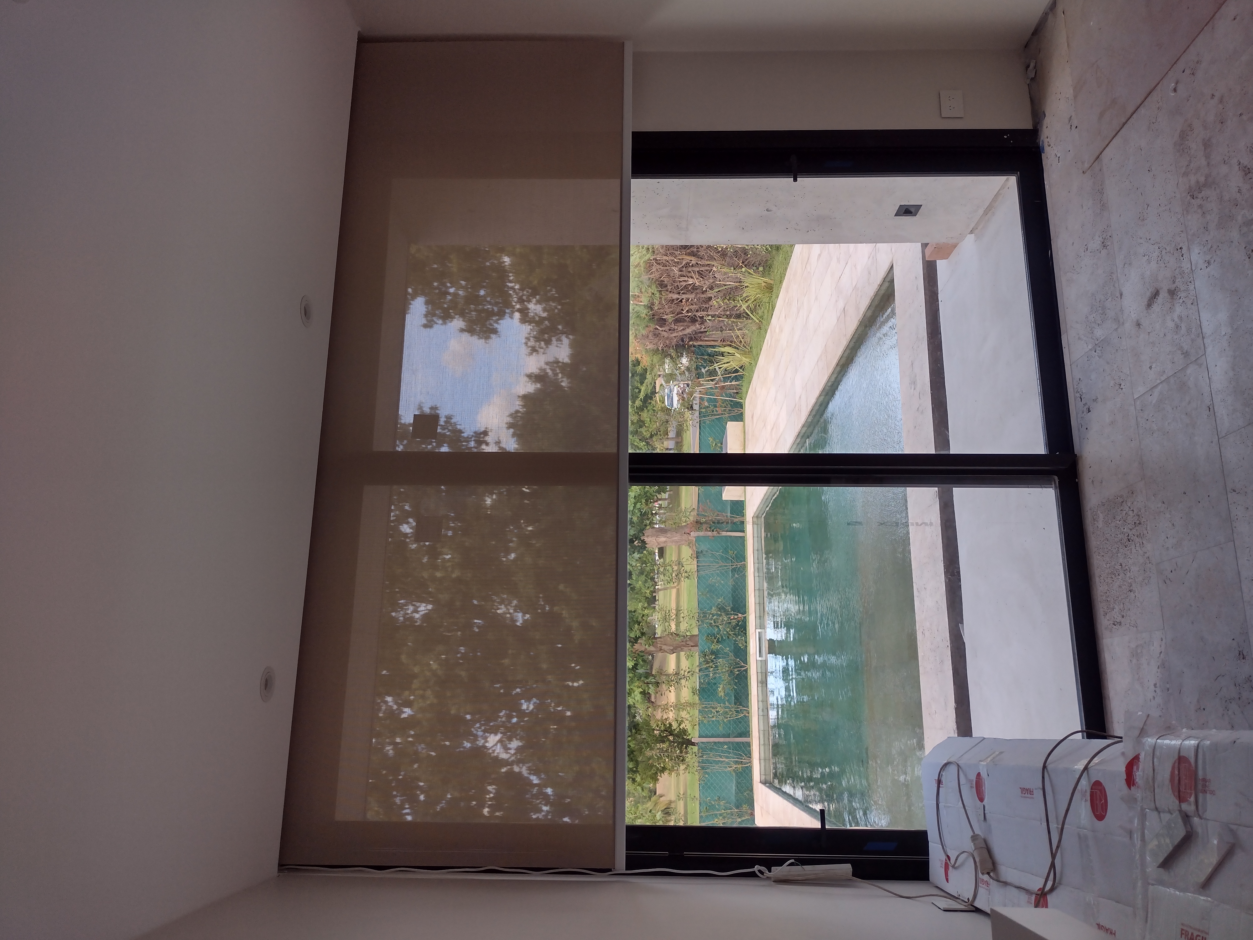 Privacidad completa, día y noche. Lás laminas bloquean el calor y la visión durante el día. Las cortinas, durante la noche.